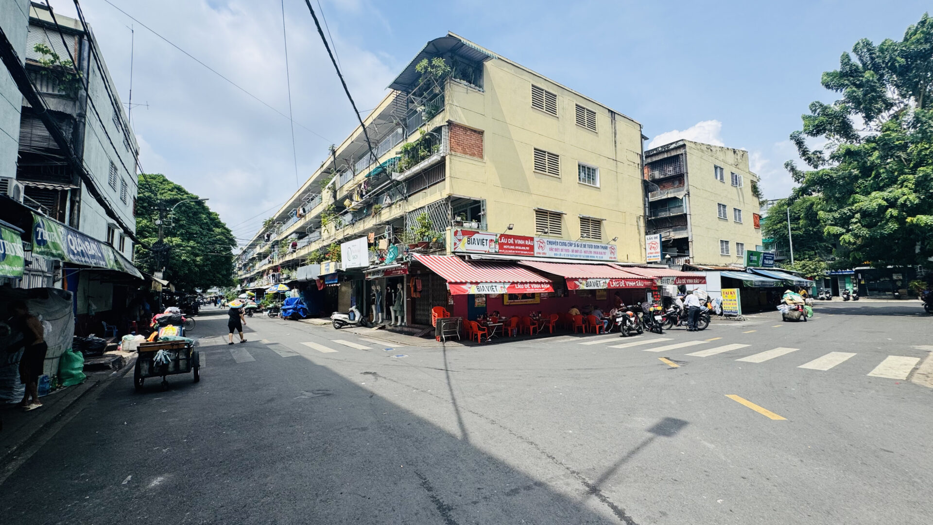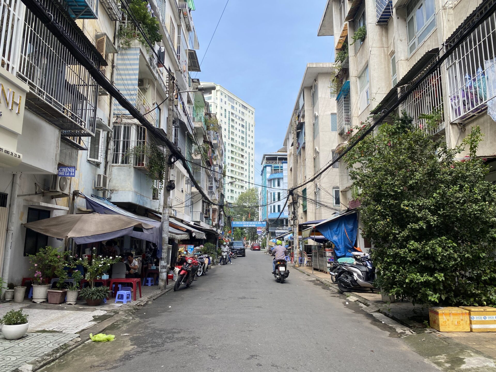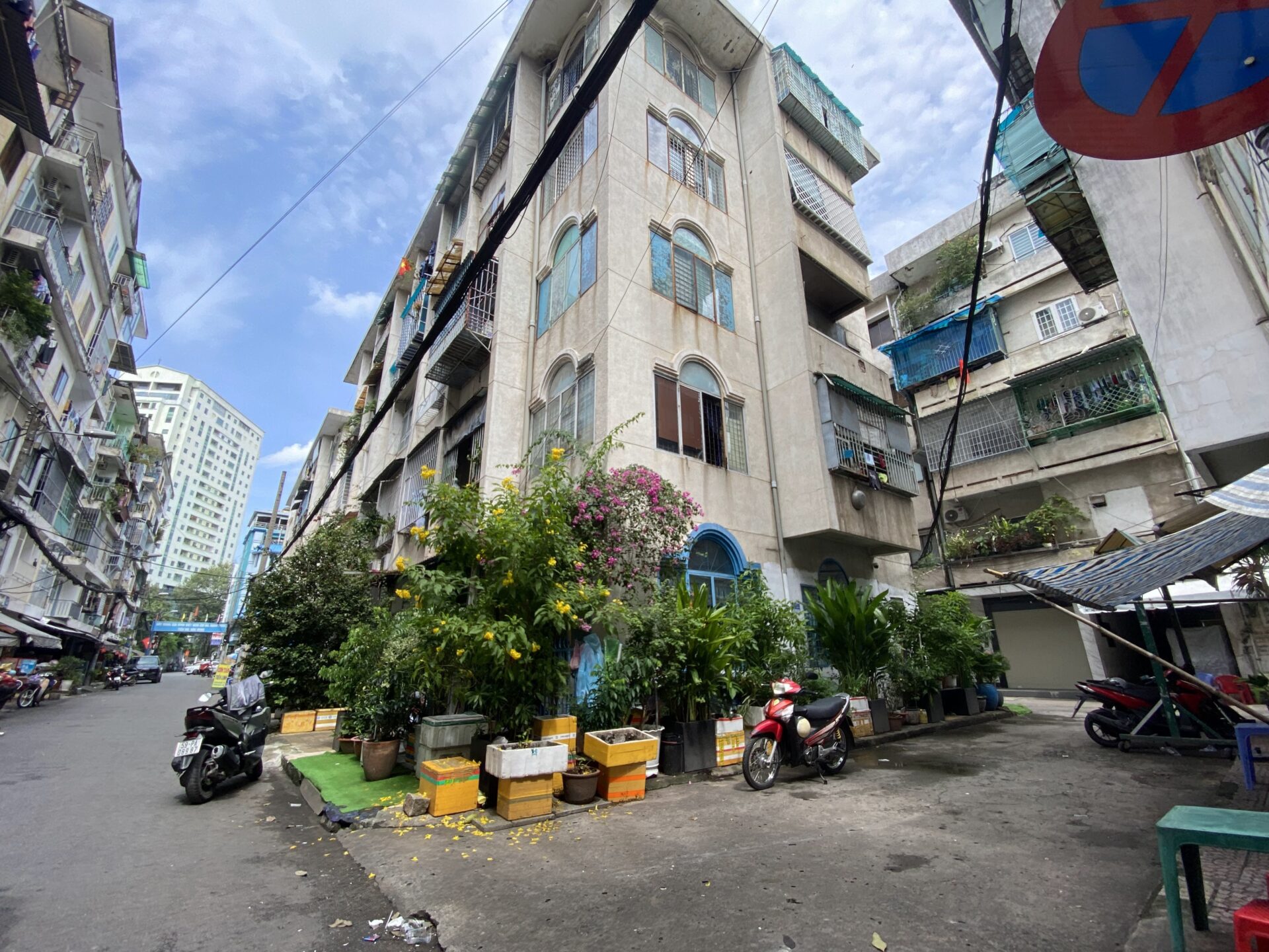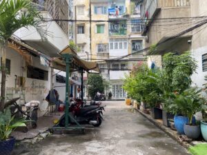 The Su Van Hanh Apartment Building area is peaceful and simple, featuring the unadorned scenery of its towers, similar to a street in Hanoi. While the space is quite cramped for what is called an apartment complex, the trade-off is that this is perhaps one of the places that offers a tranquil atmosphere and picturesque views