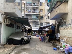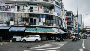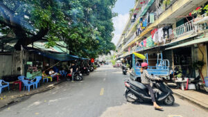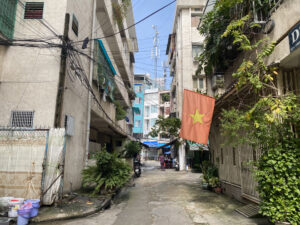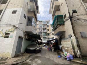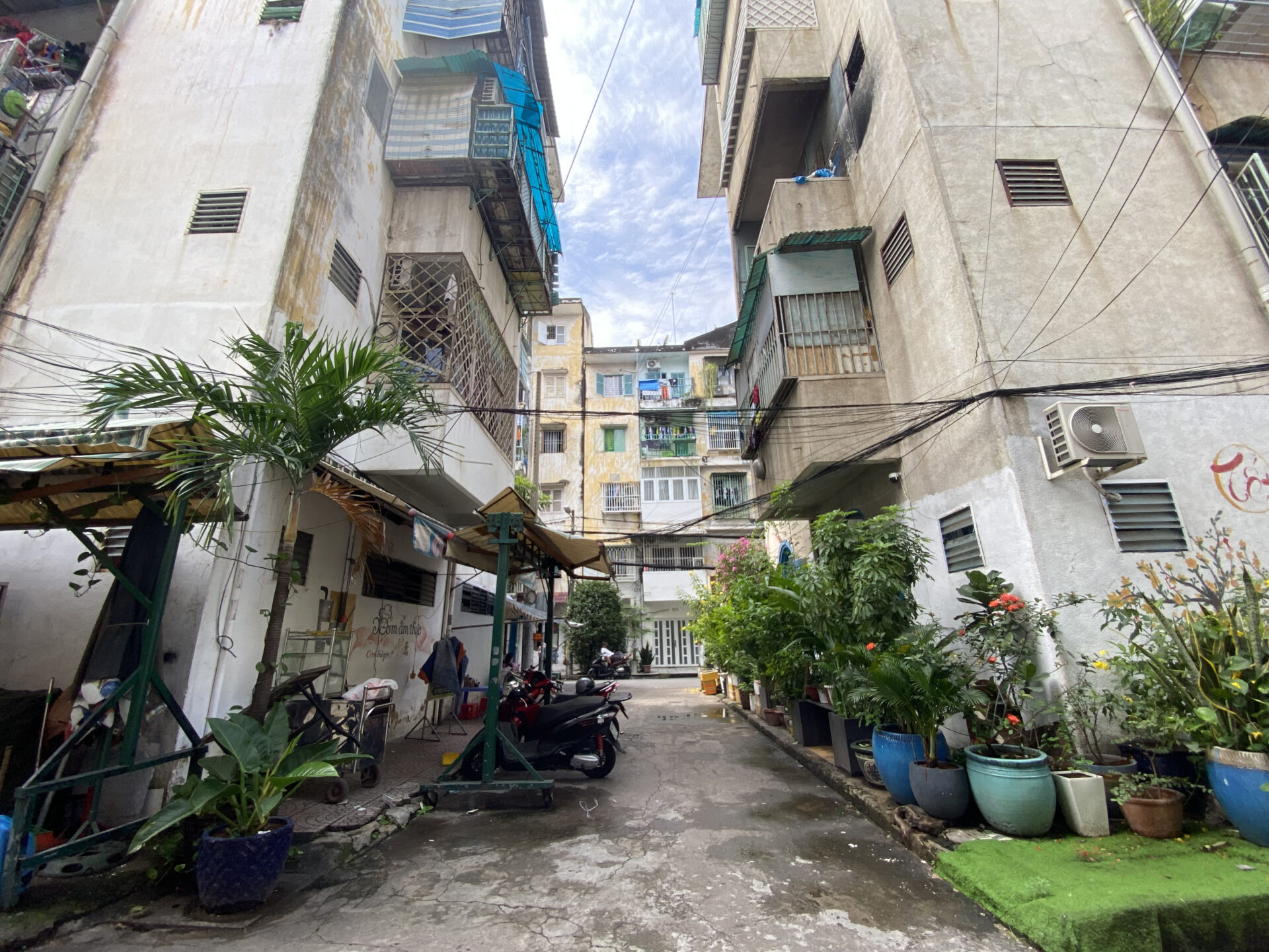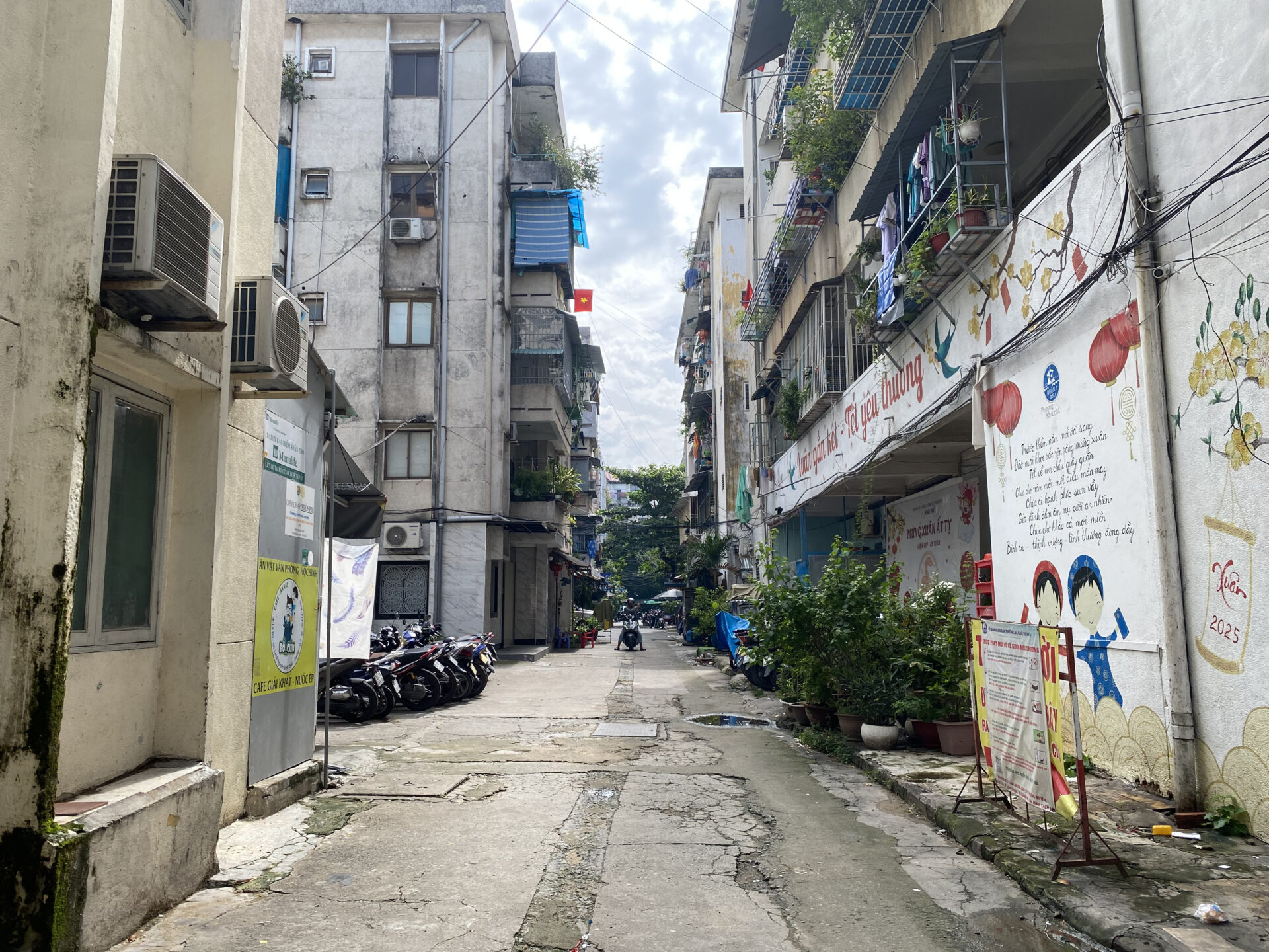 The Su Van Hanh Apartment Building area is peaceful and simple, featuring the unadorned scenery of its towers, similar to a street in Hanoi. While the space is quite cramped for what is called an apartment complex, the trade-off is that this is perhaps one of the places that offers a tranquil atmosphere and picturesque views