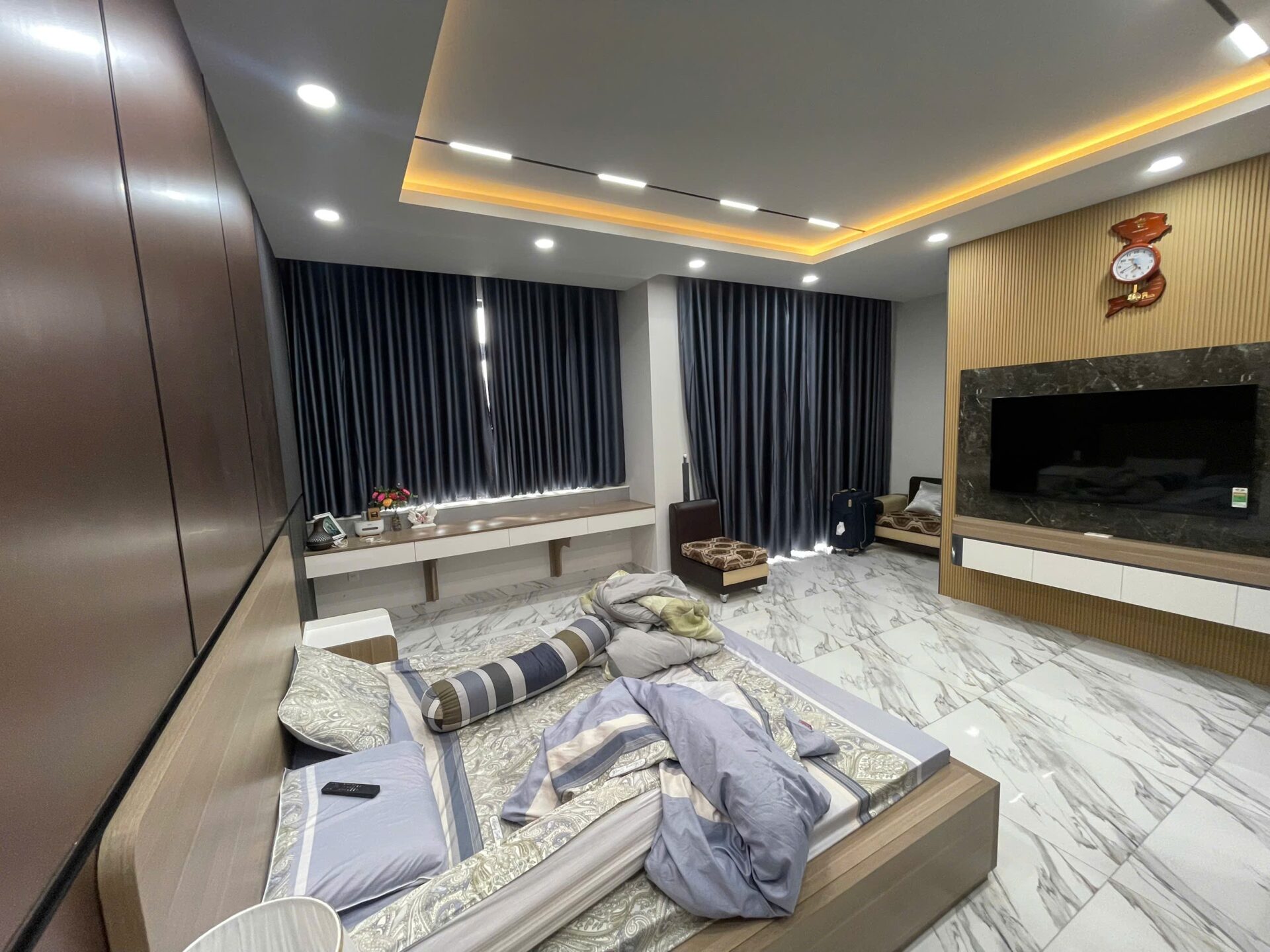 A house with luxurious and pristine interior design, featuring a dominant pure white color scheme throughout the entire structure. The house boasts three floors and includes various distinct rooms. The property is frequently rented out as a location for shooting commercials, live streams, and various types of films, ranging from short to long features, depending on the genre.