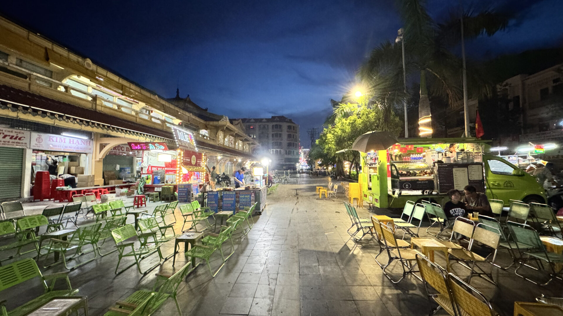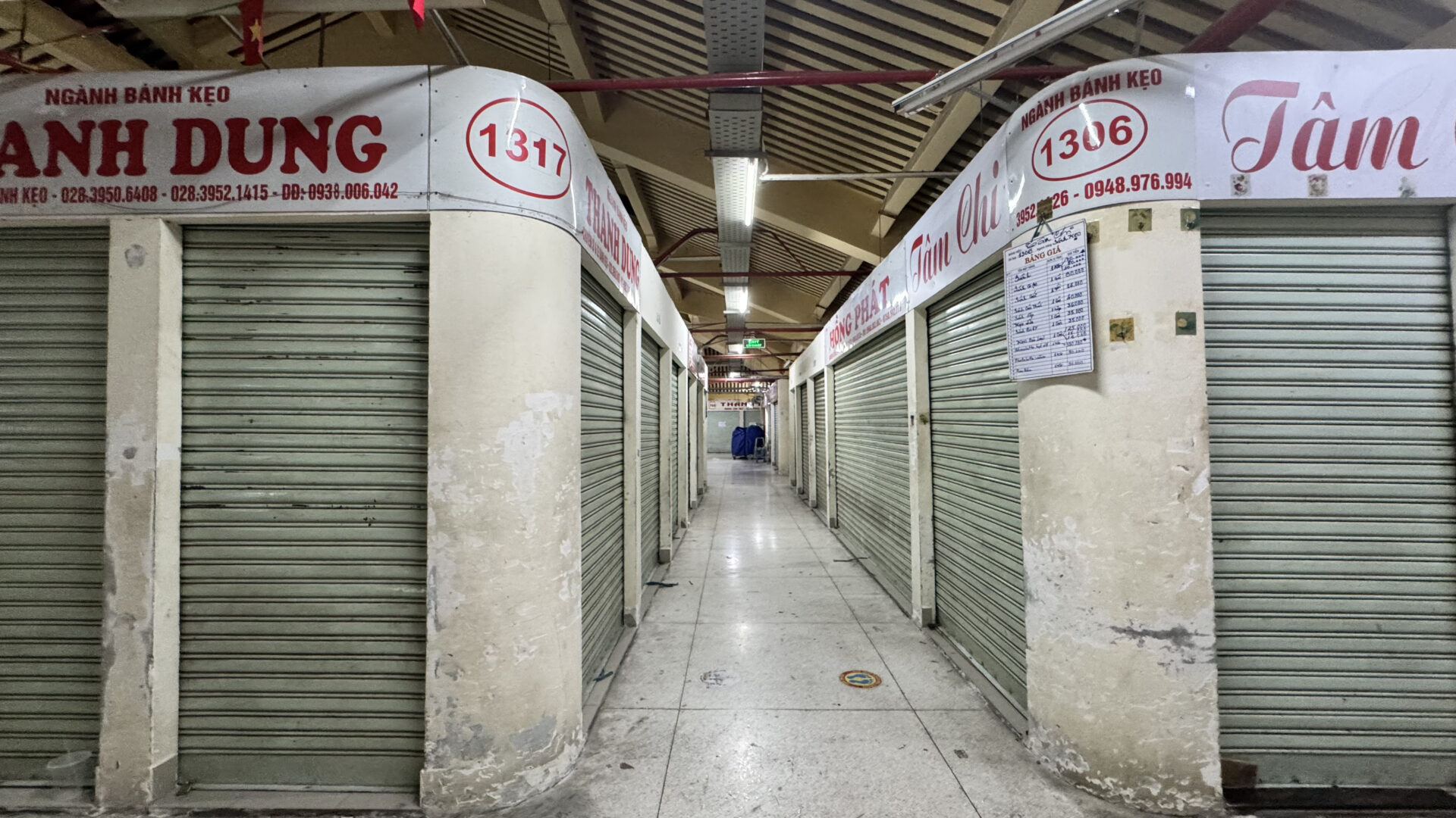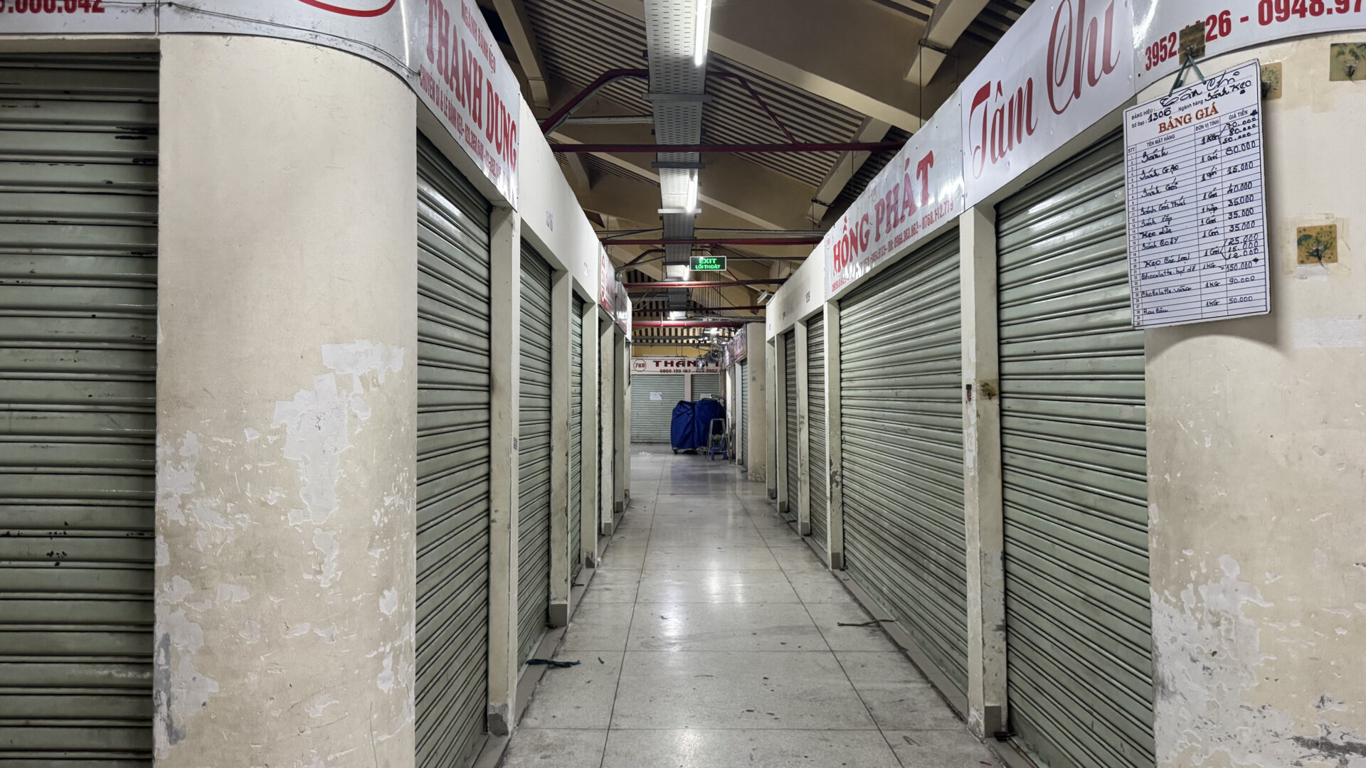 Sân trời: Chính giữa chợ là một khoảng sân trời rộng, đặt đài thờ ông Quách Đàm (người sáng lập chợ), tạo không gian mở và thoáng khí..