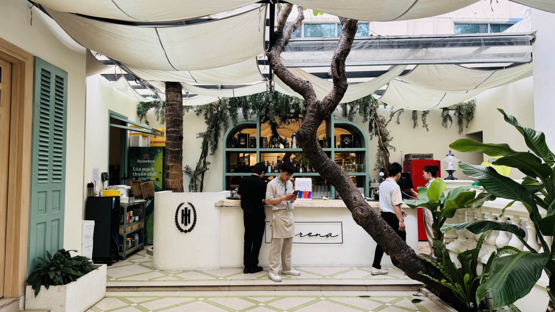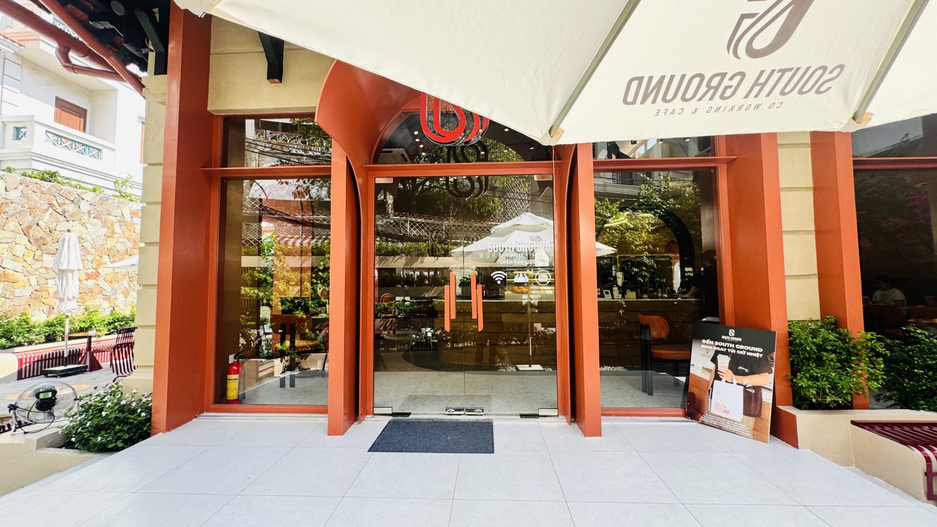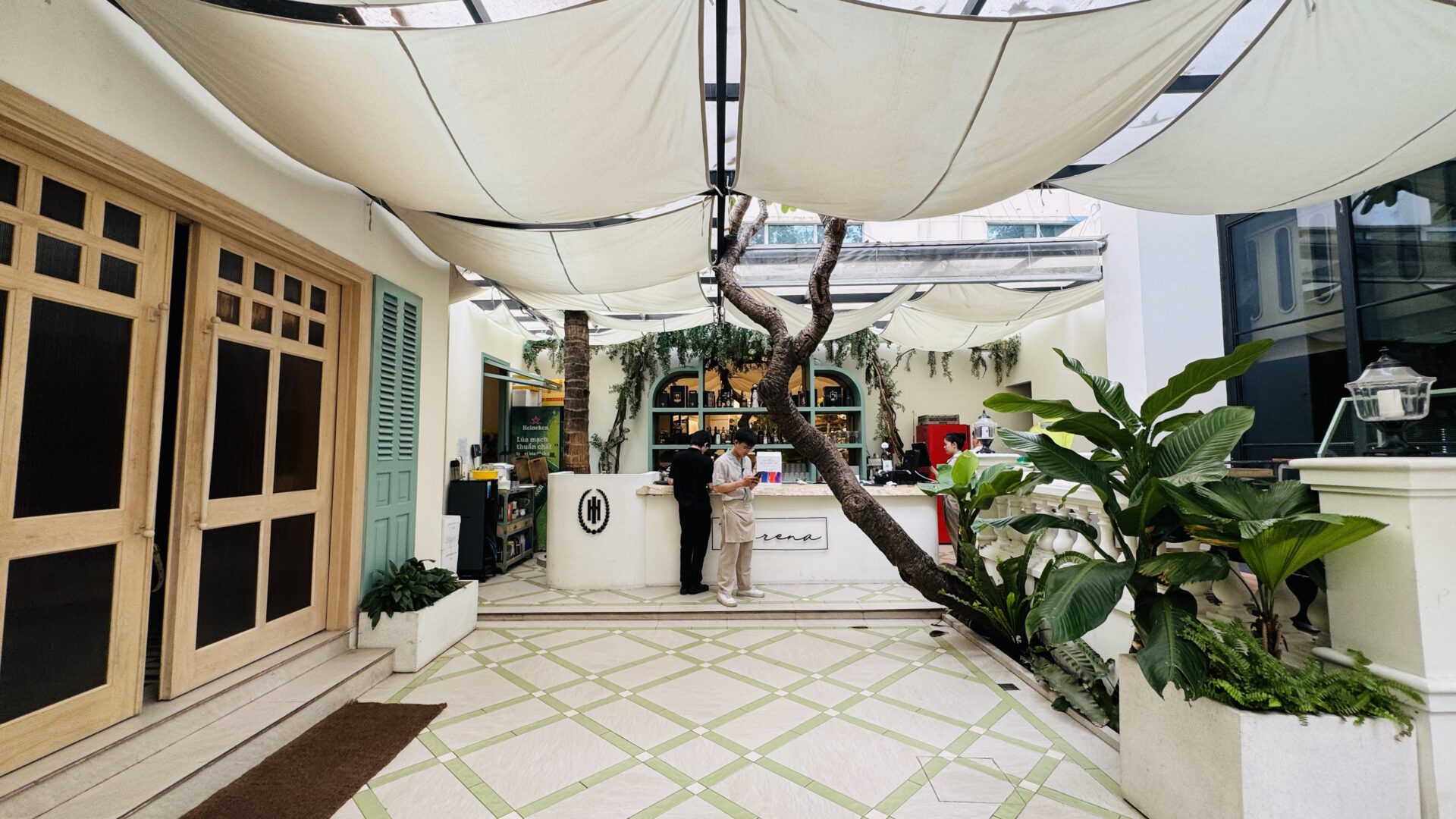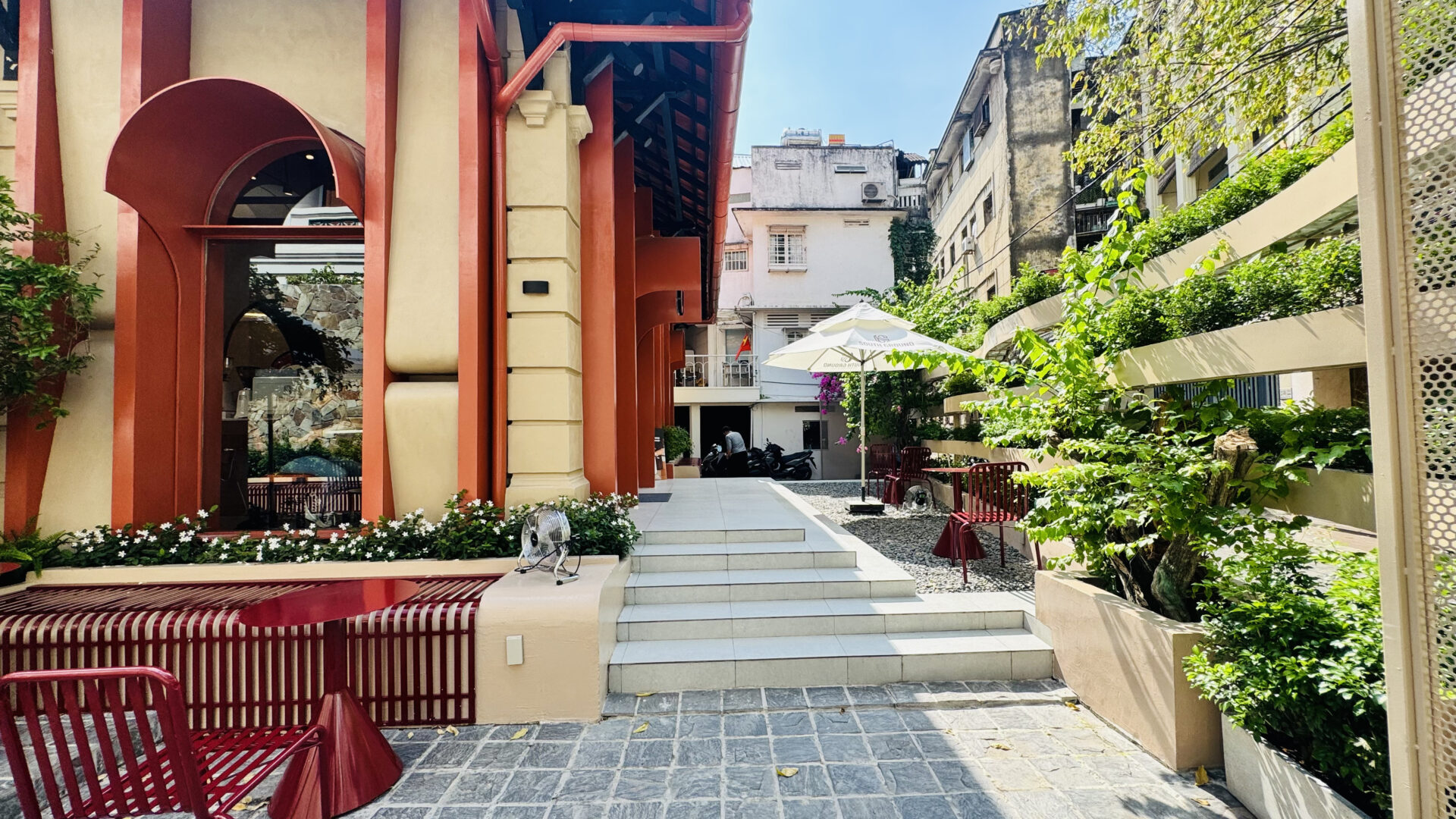 Elysian Coffee is a cafe located in Thu Duc City, featuring an airy garden space and a view overlooking the Saigon River. The cafe stands out with its modern, minimalist design, offering both outdoor seating and an air-conditioned indoor area. It is an ideal spot for relaxing, working, or meeting friends.