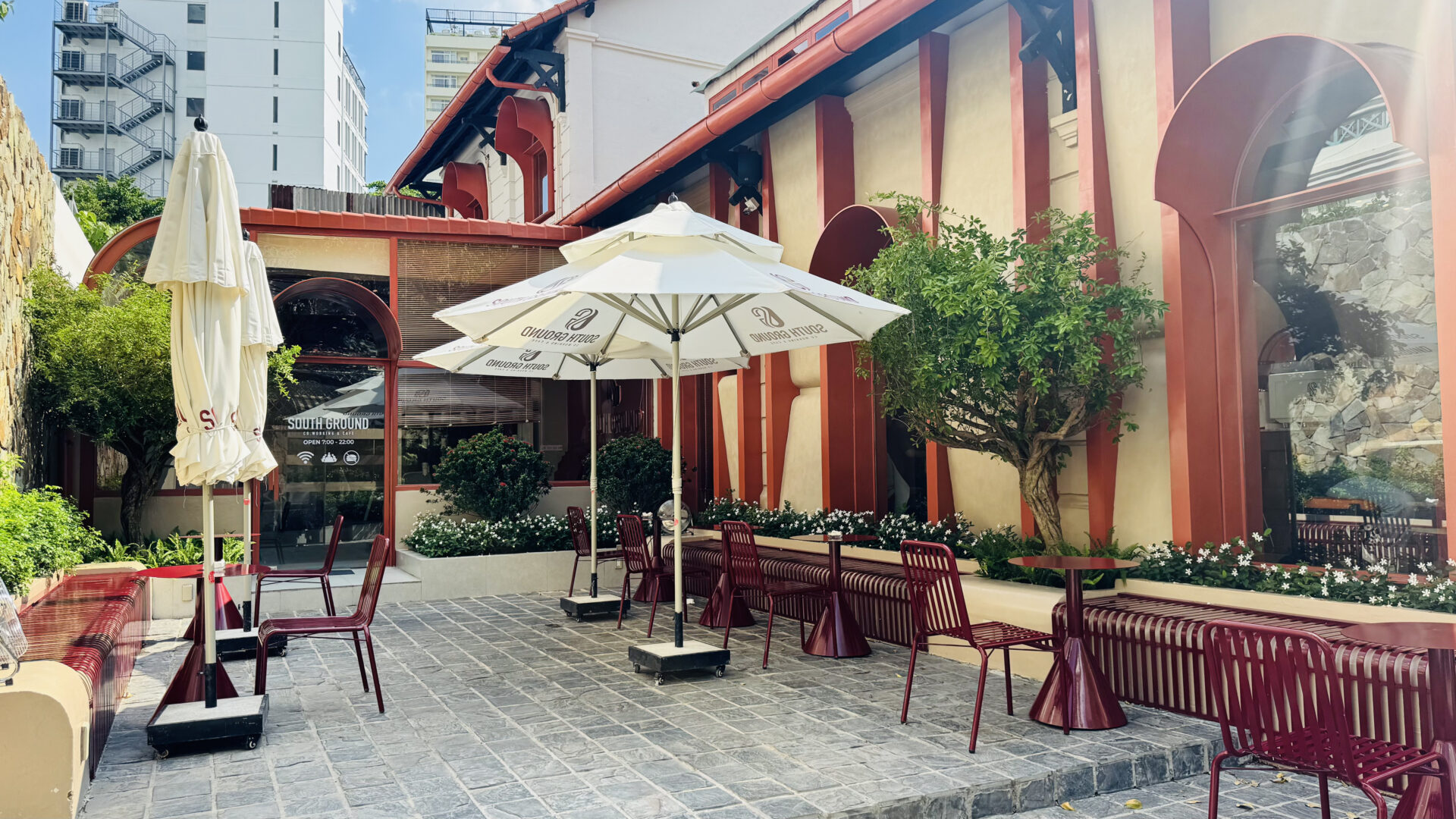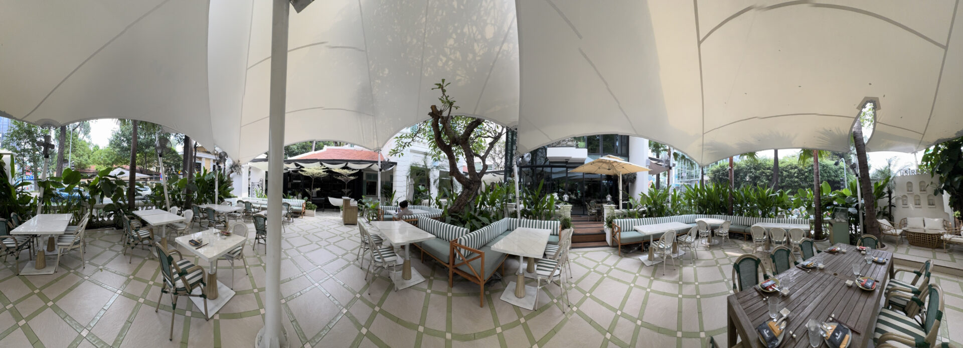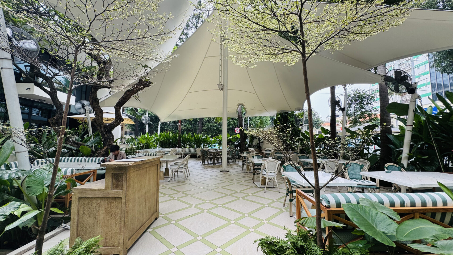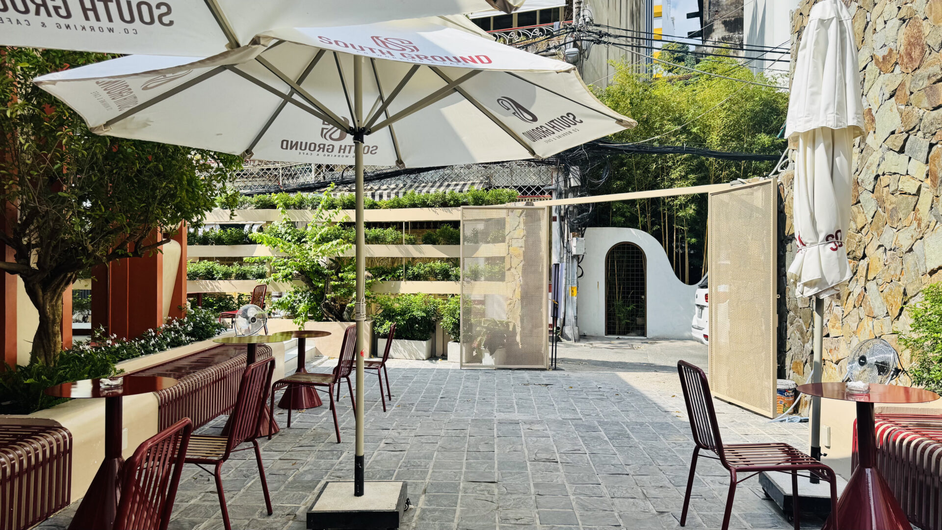 Elysian Coffee is a cafe located in Thu Duc City, featuring an airy garden space and a view overlooking the Saigon River. The cafe stands out with its modern, minimalist design, offering both outdoor seating and an air-conditioned indoor area. It is an ideal spot for relaxing, working, or meeting friends.