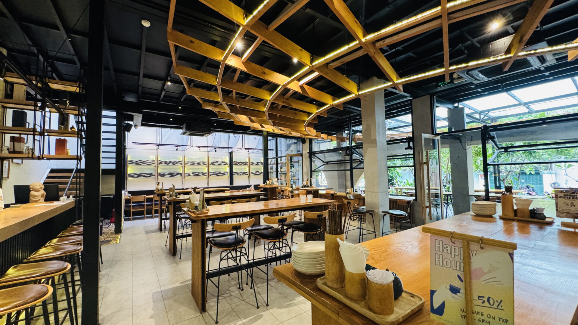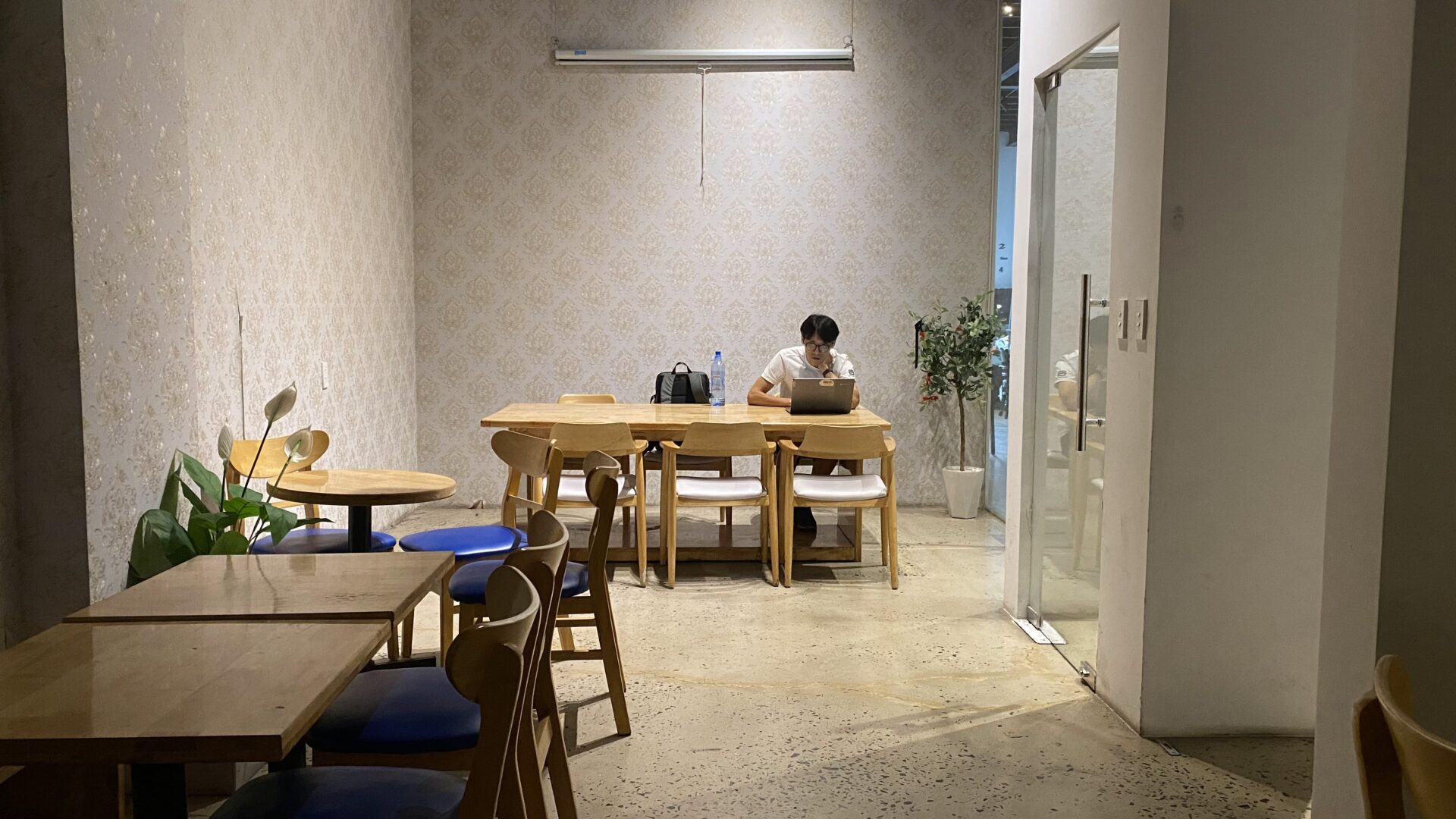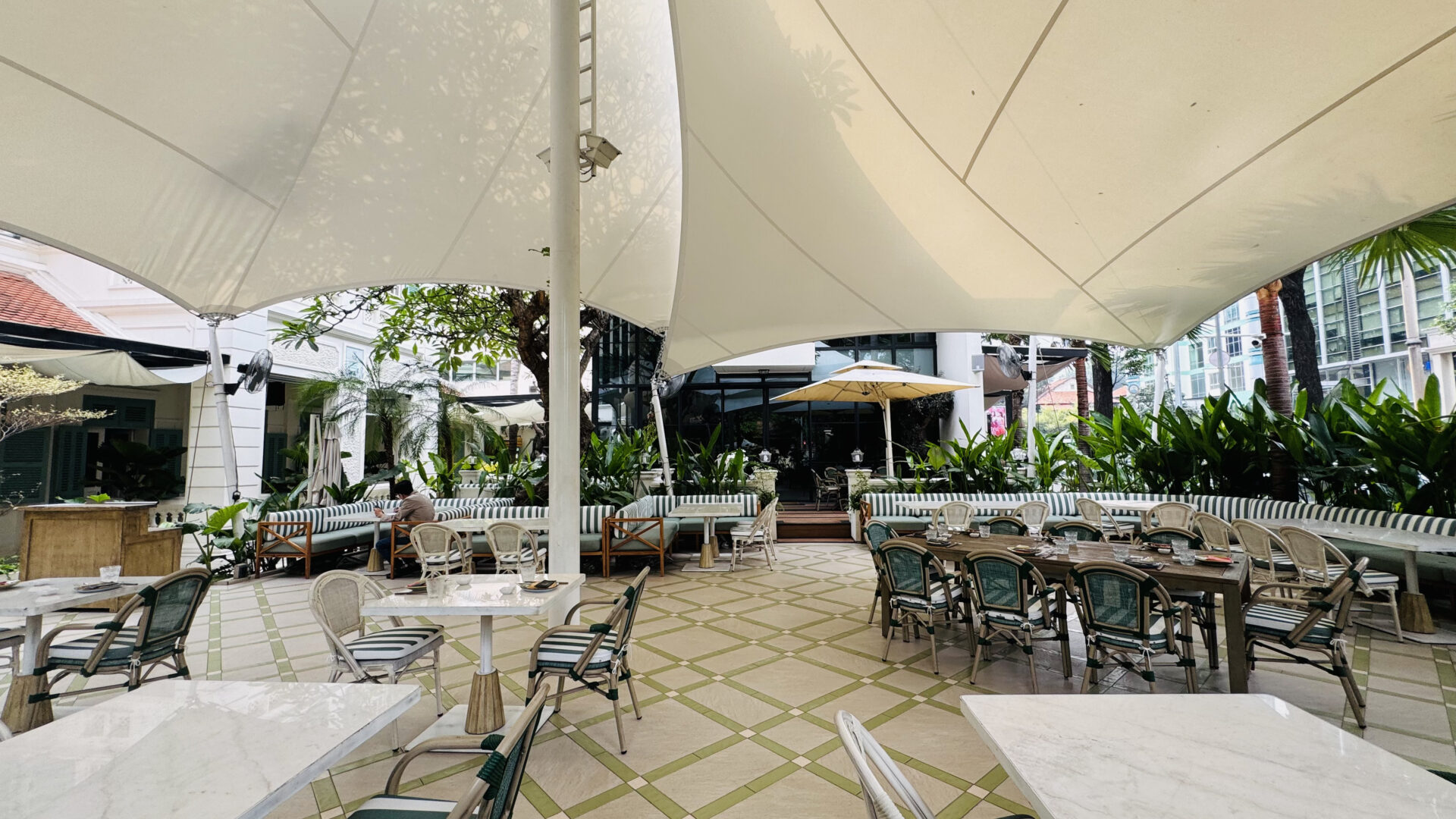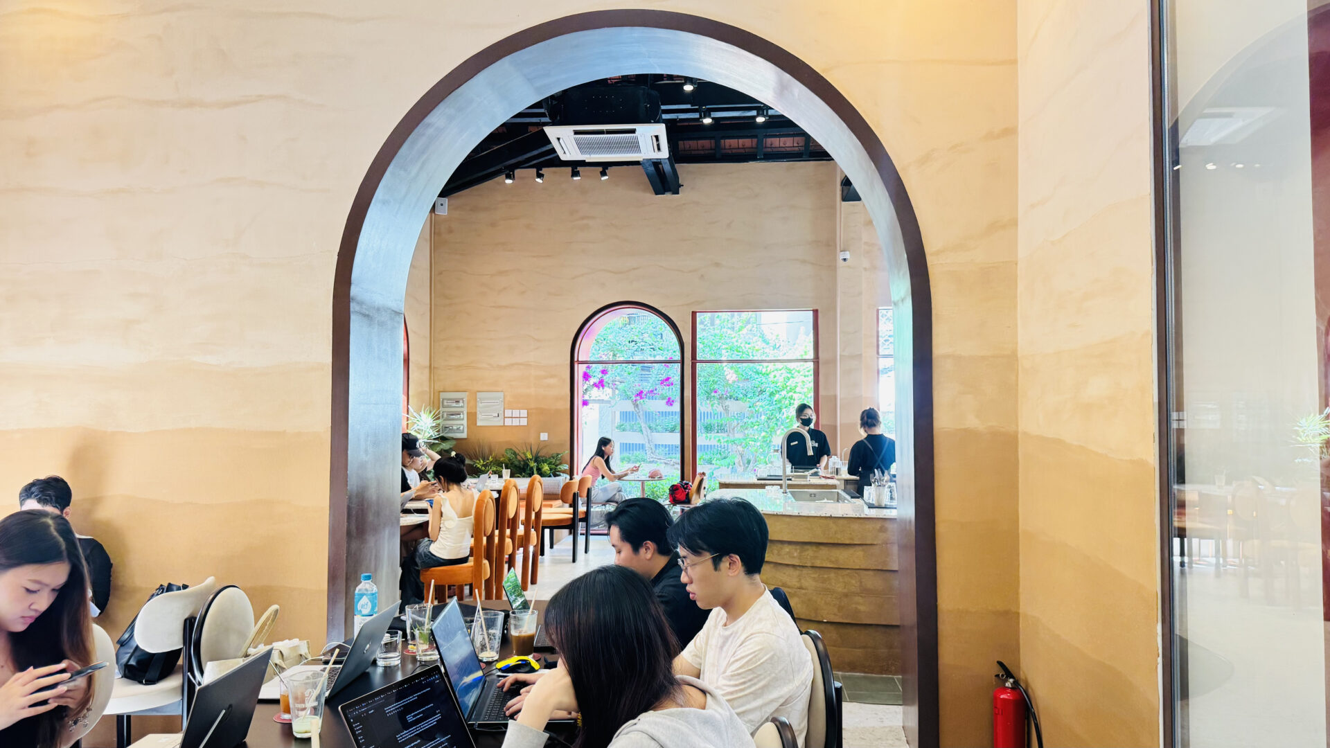 Elysian Coffee is a cafe located in Thu Duc City, featuring an airy garden space and a view overlooking the Saigon River. The cafe stands out with its modern, minimalist design, offering both outdoor seating and an air-conditioned indoor area. It is an ideal spot for relaxing, working, or meeting friends.