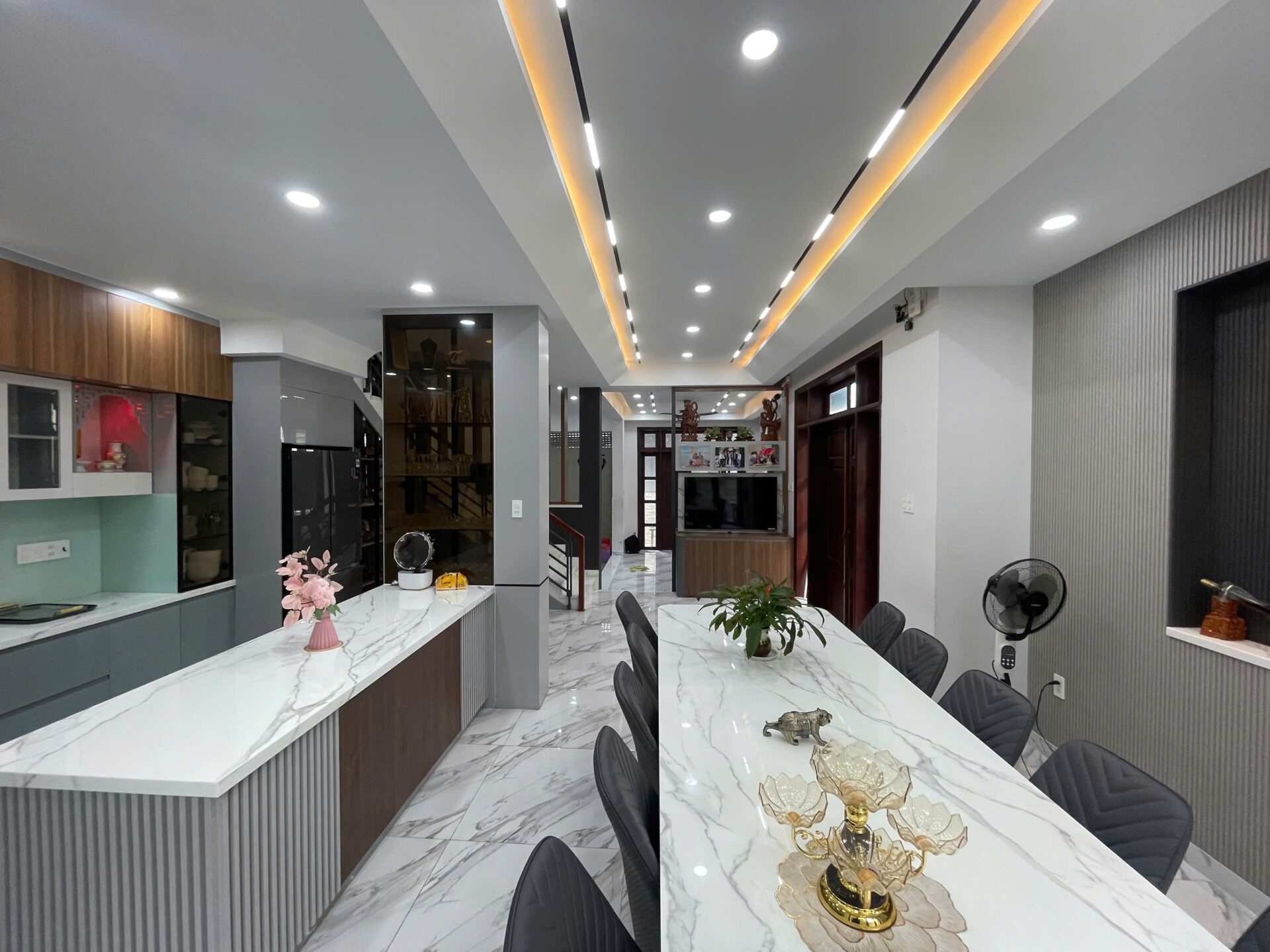 A house with luxurious and pristine interior design, featuring a dominant pure white color scheme throughout the entire structure. The house boasts three floors and includes various distinct rooms. The property is frequently rented out as a location for shooting commercials, live streams, and various types of films, ranging from short to long features, depending on the genre.